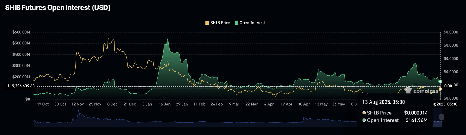Similar to DOGE, the capital inflows in SHIB derivatives have increased its Open Interest to $161.96 million from $153.90 million on Tuesday.