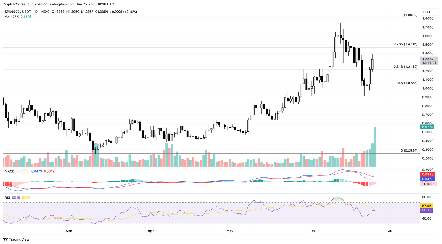 However, if SPX closes below the 61.8% level at $1.21, the meme coin could retest the $1.00 round figure.