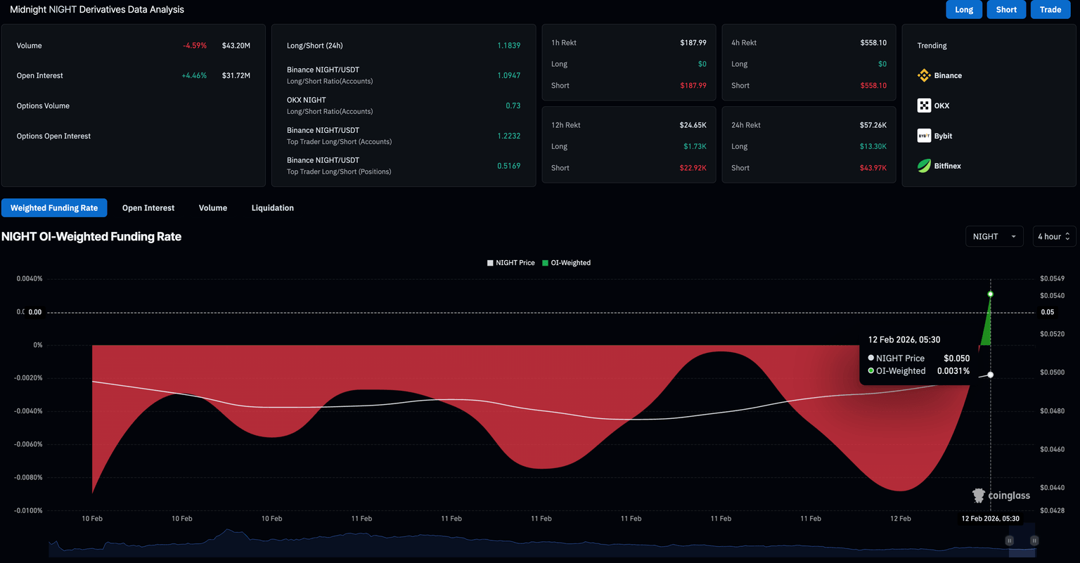CoinGlass data shows that the NIGHT futures Open Interest (OI) increased by over 4% in the last 24 hours, reaching $31.72 million, indicating increased investor demand following the mainnet release date.
