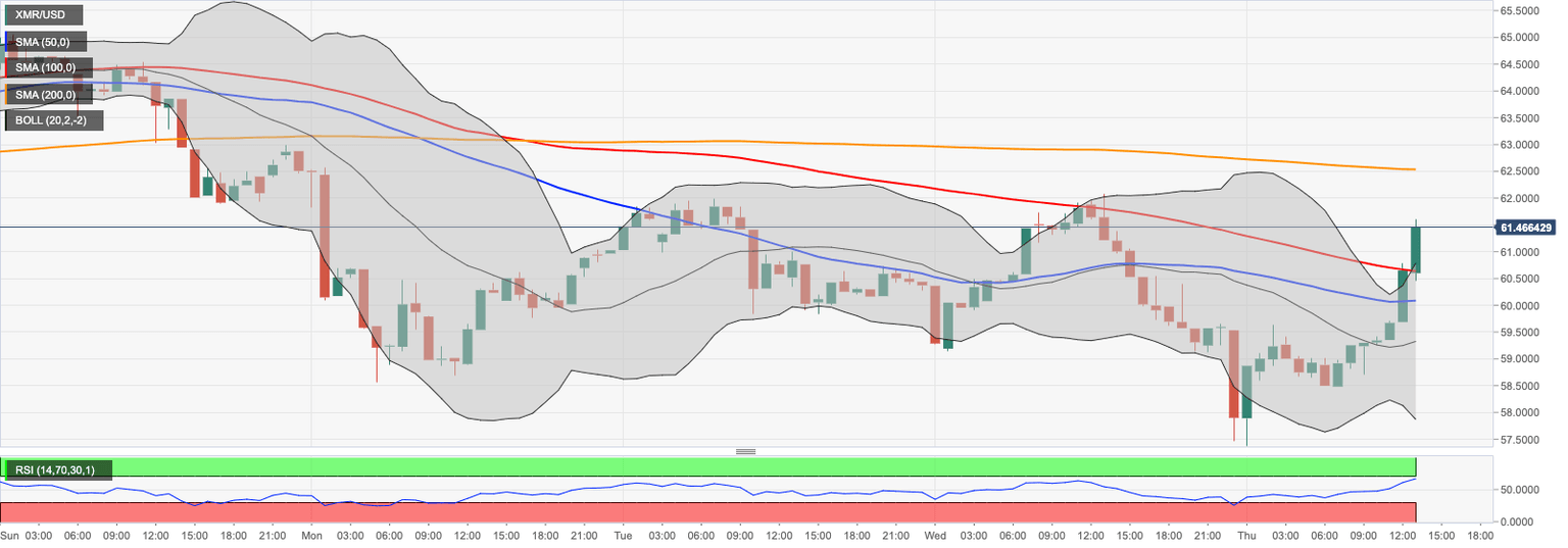 Monero Price Analysis: XMR/USD jumps above daily SMA200, $63.00 within reach
