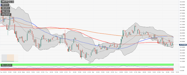 From a technical point of view, the local resistance is created by a combination of SMA100 (Simple Moving Average) and the middle line of the Bollinger Band on the one-hour chart at $45.70. Once it is out of the way, the upside is likely to gain traction with the next focus on $46.00. This barrier is expected to slow down the recovery due to a confluence of SMA50, SMA200 and the upper line of 1-hour Bollinger Band located above this area. We will need to see a sustainable move above this handle for the upside to gain traction.