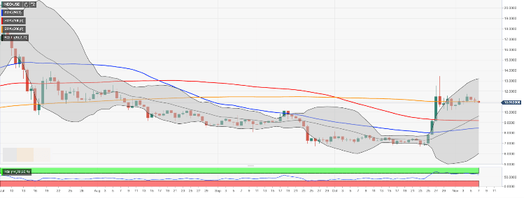 NEO reached the recent top at $11.75 on November 4 and resumed the decline. The coin had been drifting lower inside the range; however, an increased bearish pressure pushed the price below $11.00 on Thursday and worsened the short-term technical picture.