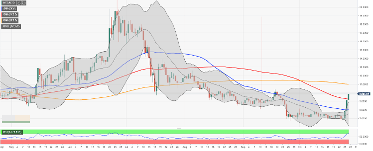 Looking technically, NEO/USD broke above the resistance created by SMA100 (Simple Moving Average) daily at $9.30. This is a strong bullish signal that allowed for the upside trend to gain traction. Notably, NEO/USD moved above SMA100 daily for the first time since mid-July. Now that it is cleared, psychological $10.00 has come into focus. A sustainable move above this handle will open up the way towards SMA200 daily at $11.00.