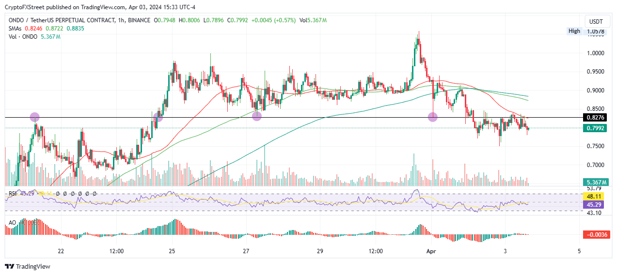 - Ondo price has turned previous high into a support-resistance at $0.8276.