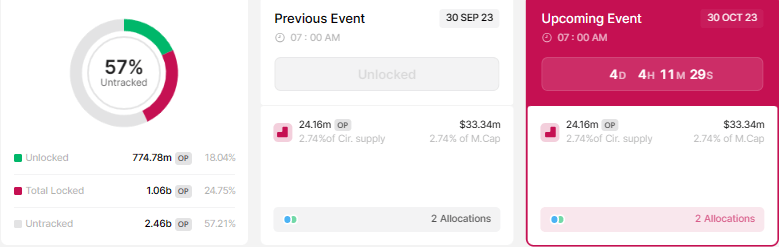- The rally could be cut short with 24.16 million OP tokens worth $33.34 million due to flood the market soon.
