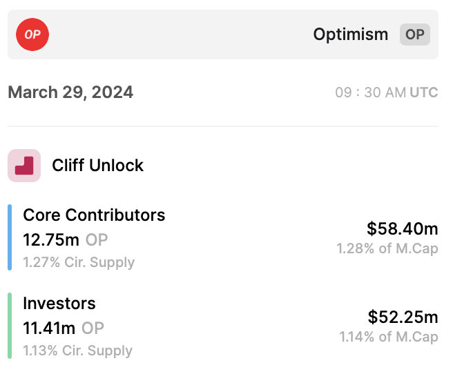 - OP price could decline in response to the sale and the upcoming unlock event on March 29.
