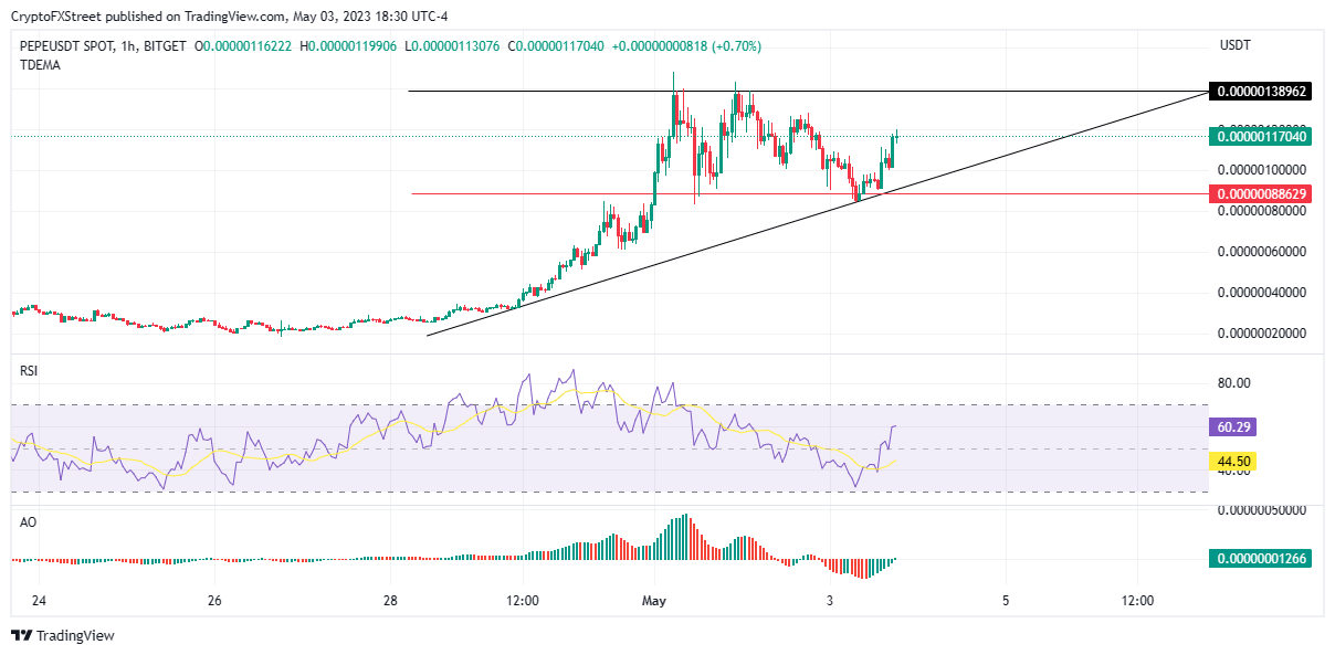 An increase in buying pressure could see Pepe price rise toward the upper boundary of the governing pattern at $0.00000138, denoting a 20% upswing. A breakout above this level could set the path for further gains.
