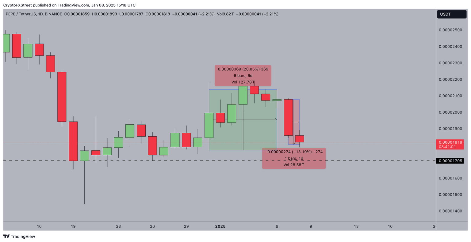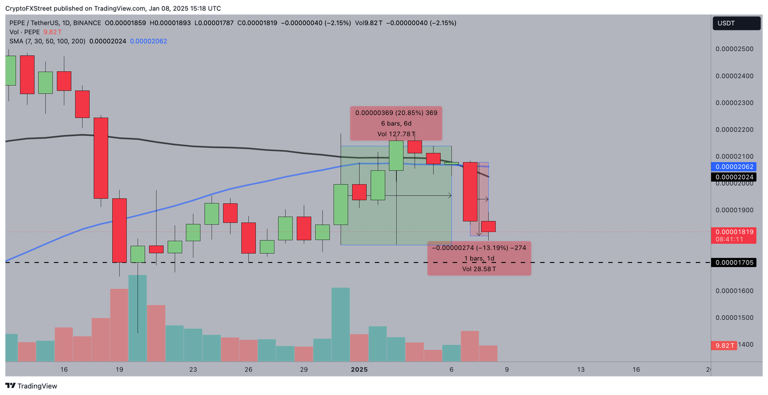 The bearish momentum in PEPE has been driven by lingering market volatility following the Fed's hawkish signals in late December.