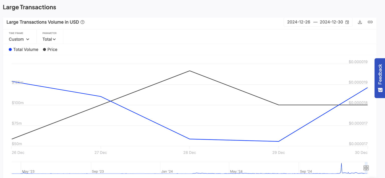 This figure represents the highest level of large wallet activity on the PEPE blockchain in over a month.