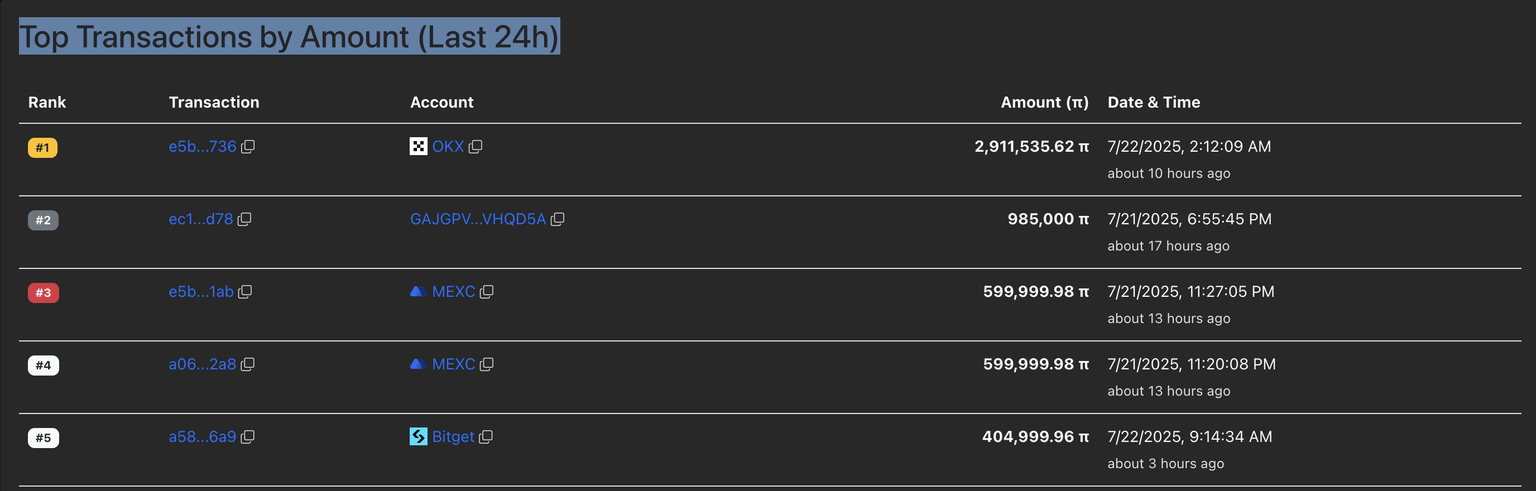 - A large-wallet investor acquires nearly 3 million PI tokens, marking the largest transaction in the last 24 hours.