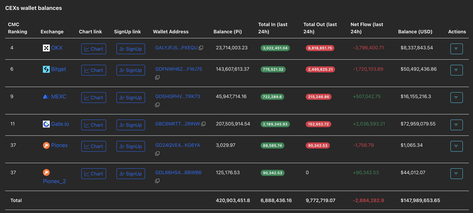 CEXs' wallet balances. Source: PiScan