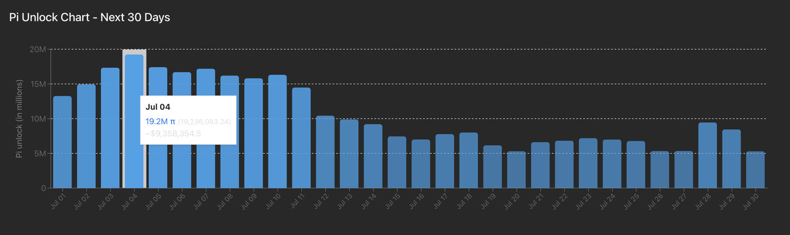 - Pi Scan data shows 19.2 million tokens to be unlocked in July, potentially increasing a supply dump risk.
