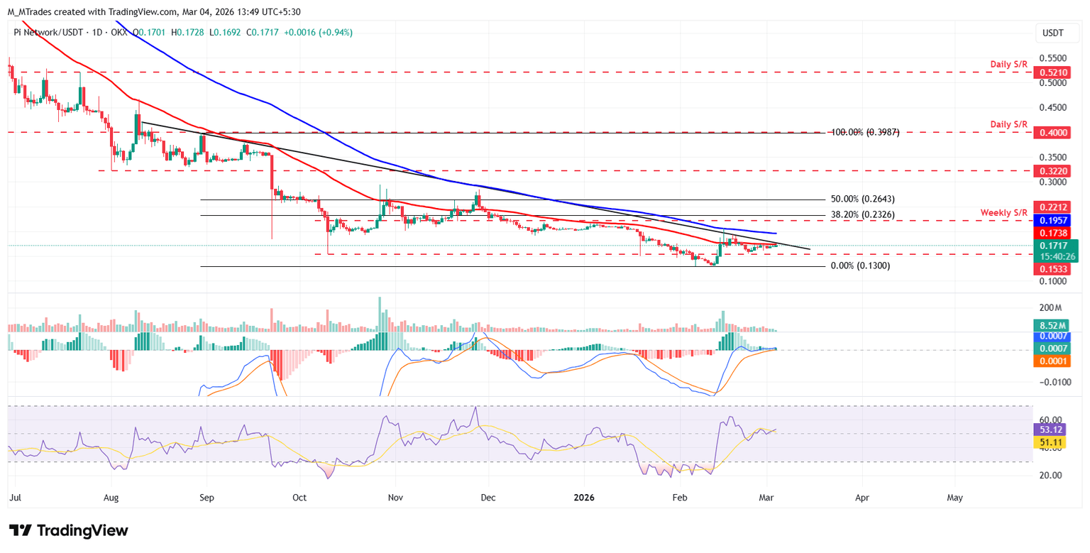 Pi Network (PI) price is approaching its descending trendline around $0.173 at the time of writing on Wednesday, set to shape the next directional move. Market sentiment remains mixed as the successful completion of the protocol v19.9 migration underscores ongoing ecosystem development, while the core team’s transfer of 60 million PI tokens has sparked concerns about potential near-term supply pressure.