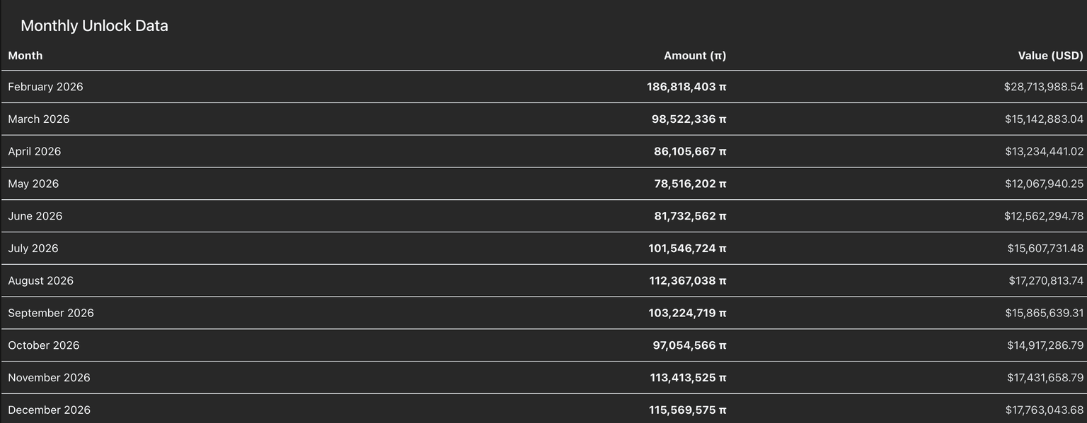 Pi Network will unlock 186.81 million PI tokens in February, the largest monthly release for the remaining year. Consistent unlocks and the mainnet migration, amid a reduction in Pi Foundation holdings, could further increase selling pressure.