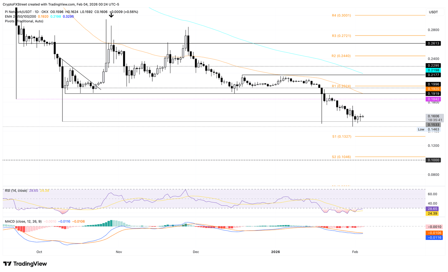 However, the short-term recovery is struggling to gain momentum, risking a reversal to $0.1533. If PI slips a daily close below this level, it would open the door to the S1 Pivot Point at $0.1327.