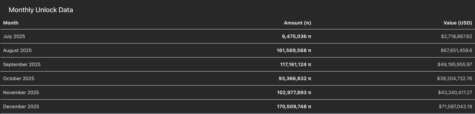 PiScan data indicates that 161.6 million PI tokens will be unlocked in August, increasing the circulating supply by 2.09%. This monthly unlock is the largest until December, when 170.5 million PI tokens will be released into circulation.