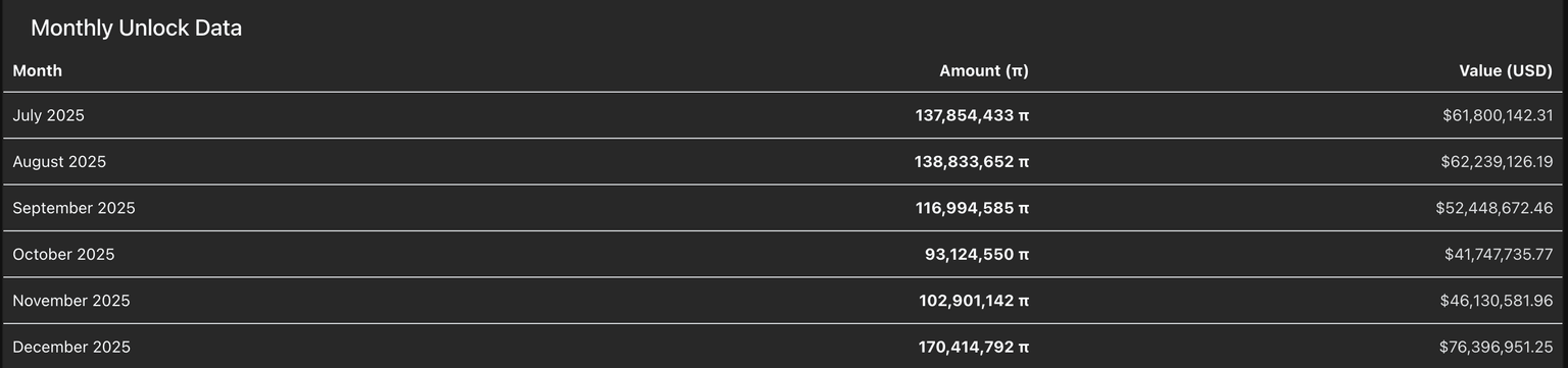 PI token unlock statistics. Source: PiScan
