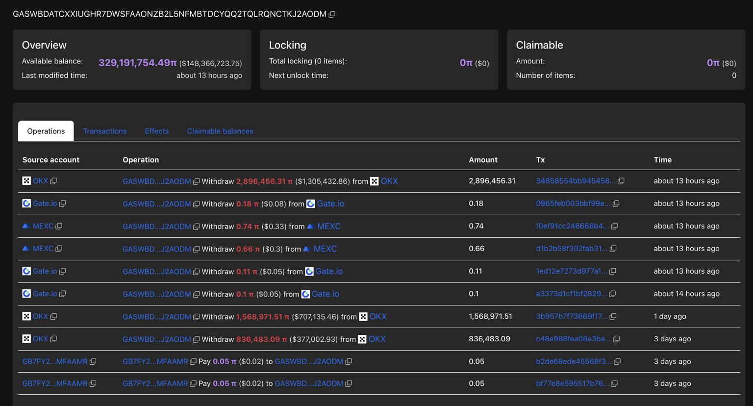 CEXs wallet balances. Source: PiScan