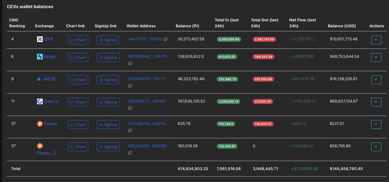 PiScan data shows that the 7.06 million PI token inflows to the CEXs' wallet balances outpaced the 3.94 million PI outflow, resulting in a net inflow of 3.11 million PI tokens, which is worth nearly $1.08 million at the current price. The 3.11 million net PI token inflow results in a 0.75% increase in the CEXs' wallet balances, rising to 414.63 million PI tokens.