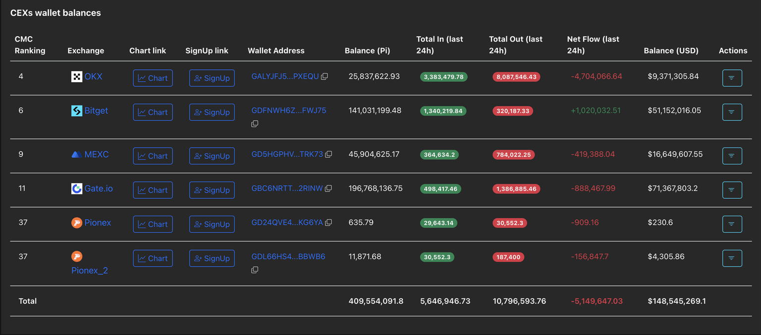 PiScan data shows the CEXs’ wallet balances recording an outflow of 5.14 million PI tokens in the last 24 hours, dropping the reserve to 409.55 million tokens. This massive withdrawal accounts for a 1.24% decrease in CEX's balances, indicating a surge in demand among investors, is likely driven by the start of the Pi Hackathon 2025, the ecosystem's first hackathon after the launch of Open Network.