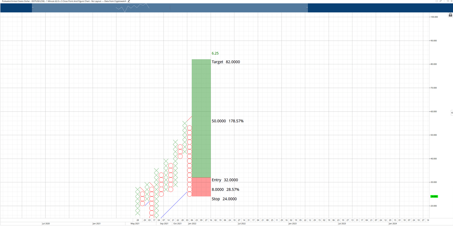 Polkadot price could experience an unprecedented spike over the next week and extend into late January 2022. The setup on the $2.00/3-box reversal Point and Figure chart indicates a more than 300% move higher from the present value area.