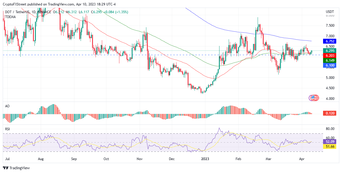 Polkadot price, at the time of writing, is at $6.29 after gaining almost 1% in the last 24 hours. The altcoin was rejected from the $6.45 resistance and found some bullish relief after the support at $6.10 held.