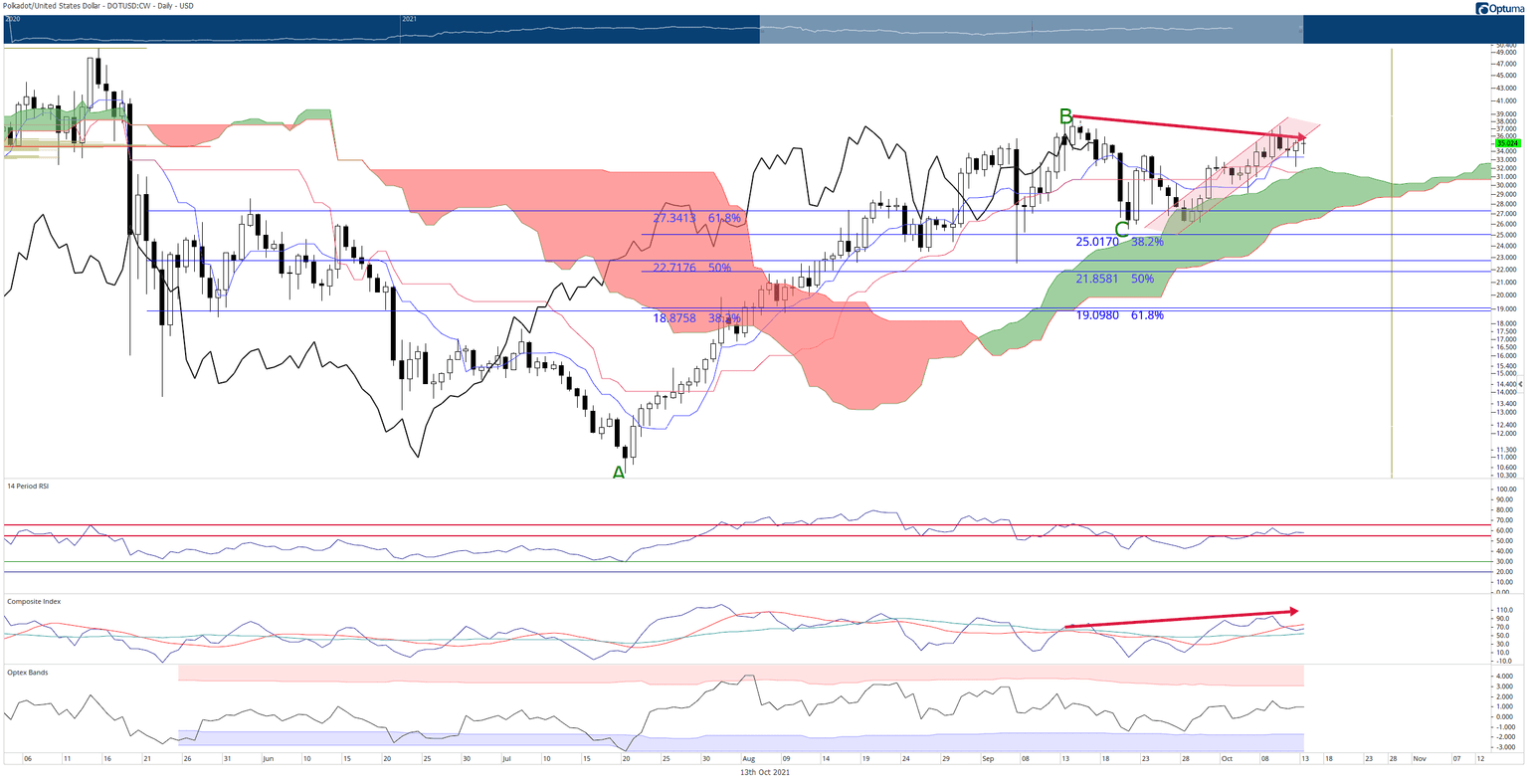 Polkadot price has formed a double-top with the highs formed near $38 precisely one month ago. It is now trending lower with significant selling pressure over the past three trading days – but buyers have stepped in to keep the bodies of the daily candlesticks above the Tenkan-Sen.