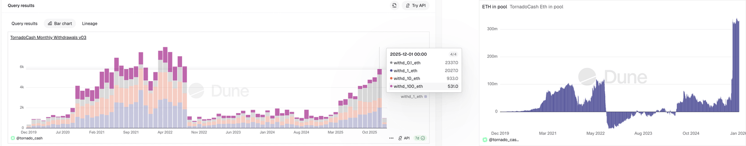 Privacy coins have outperformed the broader cryptocurrency market in 2025, with gains of nearly 290%. The growing user base, pool size, and monthly withdrawals on the cryptocurrency tumbler Tornado Cash reflect a surge in demand for on-chain anonymity amid regulatory pushes, such as the 2025 US GENIUS Act, and the Markets in Crypto-Assets Regulation (MiCA) in the European Union (EU). Additionally, the increasing number of wrench attacks, which are real-world assaults to steal digital assets, risks the social identity of holders worldwide.