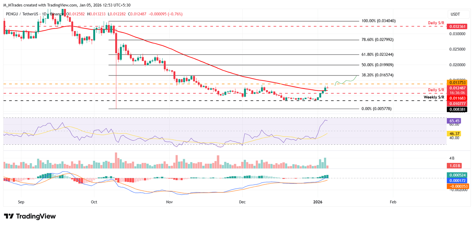 Pudgy Penguins Price Forecast: PENGU bulls aiming for the $0.013 mark