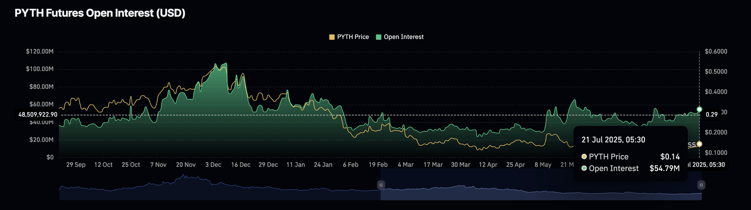 - PYTH Open Interest exceeds $50 million as optimism grows in the derivatives market.