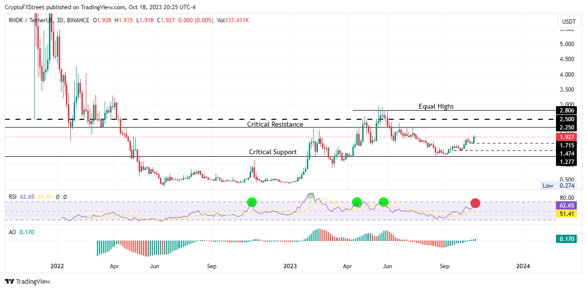 In a highly bullish case, the northbound move could extend for Render price to clear the equal highs around $2.806. Such a move would denote a 45% climb above current levels.