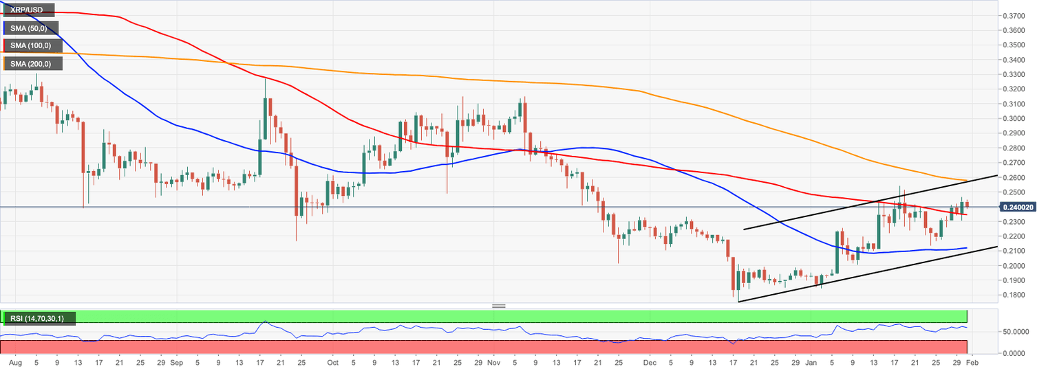 From the long-term point of view, XRP/USD bottomed out at $0.1752 on December 18, 2019, and has been moving within an upside channel ever since. The price attempted to break the upper boundary of the channel on several occasions, but each time it reversed to the downside. At the time of writing, XRP/USD is sitting in the middle of the above-said channel with the upper boundary now at $0.2552, reinforced by SMA200 daily. Once it is out of the way, the upside is likely to gain traction with the next focus on psychological $0.2600 and $0.3000. This psychological barrier is strengthened by SMA50 weekly located on approach.
