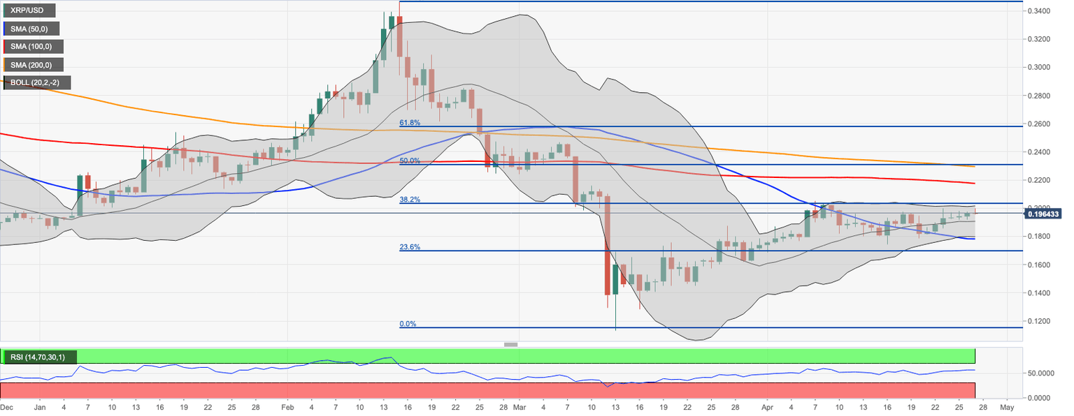 - XRP/USD recovery capped by the psychological level $0.2000.