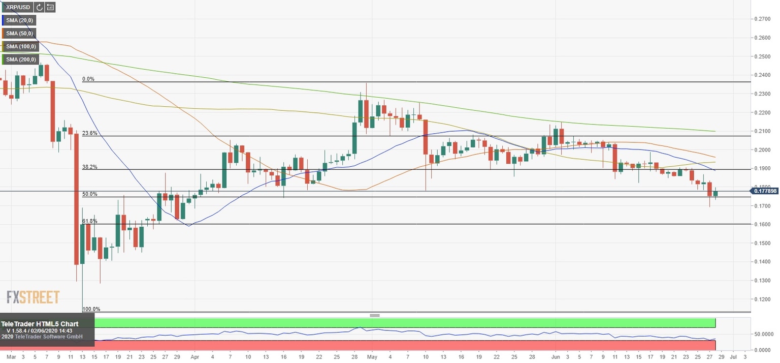 Ripple (XRP/USD) fell to its lowest level since late March at $0.1690 on Saturday and closed the day with a loss of more than 4%. The positive sentiment surrounding major cryptocurrencies helped Ripple start erasing its losses. As of writing, the XRP/USD pair was up 1.6% on a daily basis at $0.1780.