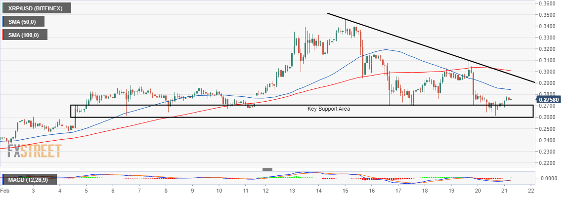Ripple price is most likely to settle in sideways trading between the immediate resistance at $0.28 and the immediate support at $0.28. The sideways action is reflected in the MACD, currently moving horizontally at -0.00318. If the slightly visible bullish divergence increases, there is a chance that, Ripple could move past $0.28. The 50 SMA on the 2-hour chart could also limit the gains towards $0.29 and the 100 SMA at $0.30.