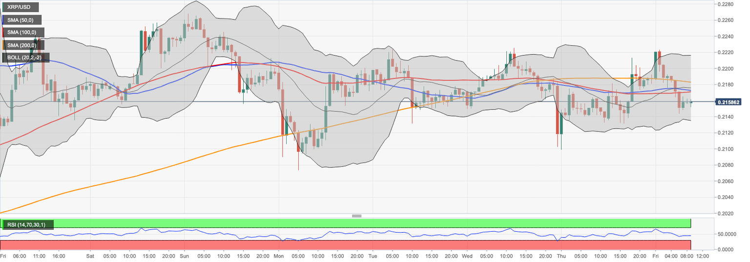 - XRP/USD is locked in a tight range limited by $0.2200.