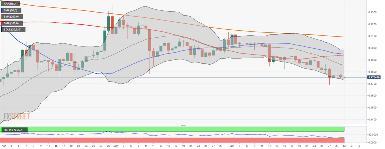 XRP/USD attempted a recovery to $0.1800 on Tuesday only to retreat to $0.1750 by the time of writing. The coin has stayed mostly unchanged both on a day-to-day basis and since the beginning of Wednesday, moving in a tight channel with the short-term bullish bias amid expanding volatility. Ripple's XRP is the fourth largest digital asset with the current market value of $7.79 billion and an average daily trading volume of $1 billion. XRP/USD has lost over 15% in June and over 50% since this time in 2019.