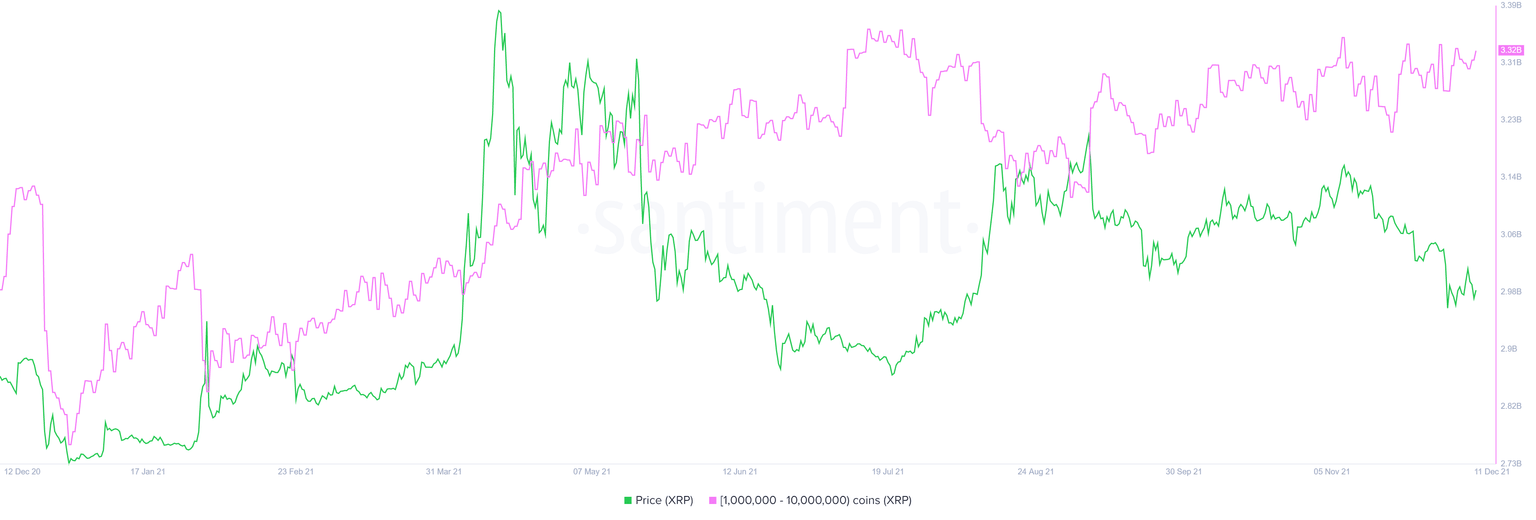 Over the past year, addresses holding 1 million to 10 million XRP have increased their holdings from 2.76 billion to 3.32 billion tokens. The 18.1% increase suggests that institutions continue accumulating XRP, expecting its market value to increase in the coming months or years.