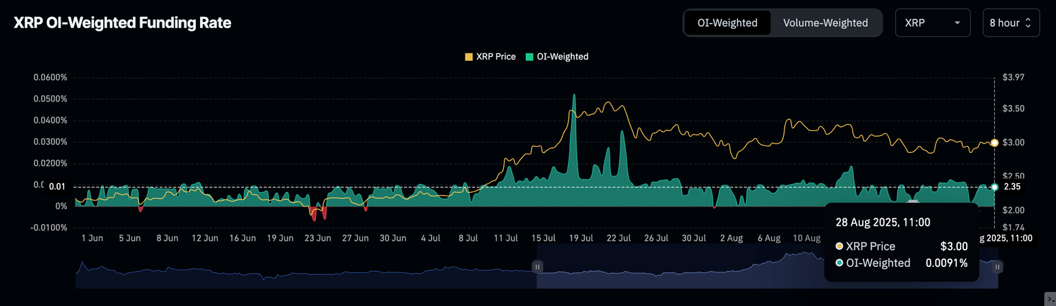 Ripple (XRP) shows signs of recovery, holding support at $3.00 on Thursday. Interest in the cross-border money remittance token has steadied over the past few days, underpinned by the futures weighted funding rate rising to 0.0090% from 0.0018% recorded on Tuesday.