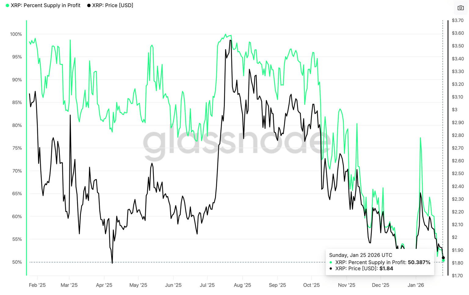 - The percentage of XRP held in profit has declined to levels seen in early January amid heightened investor capitulation.