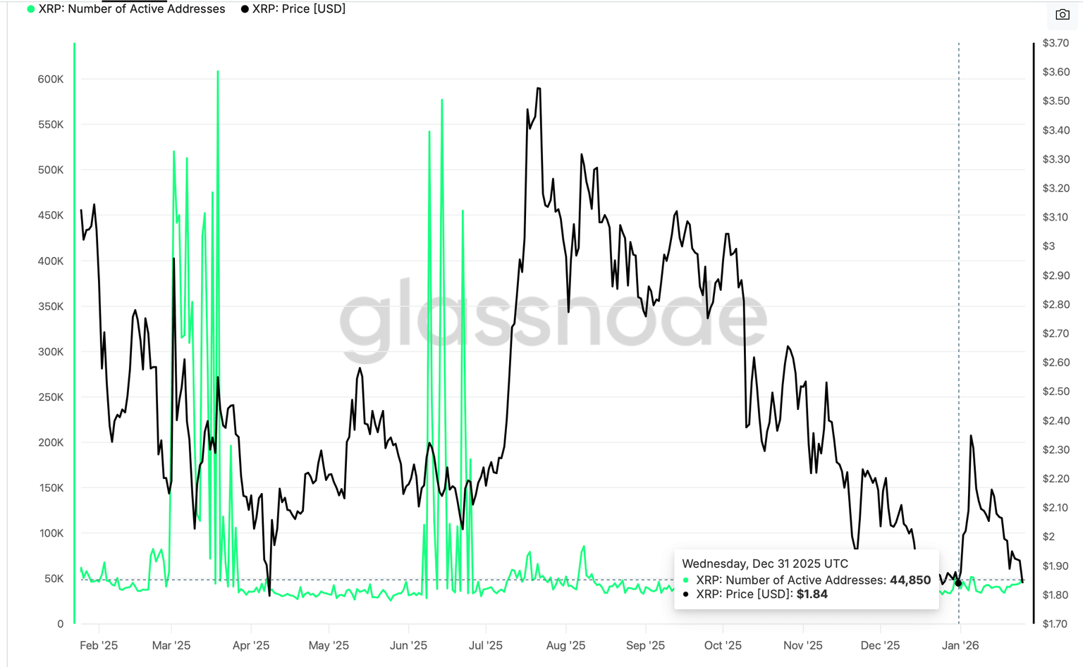 - The number of active addresses on the XRP Ledger dropped to 49,500 as of Sunday, signaling a decline in on-chain activity.