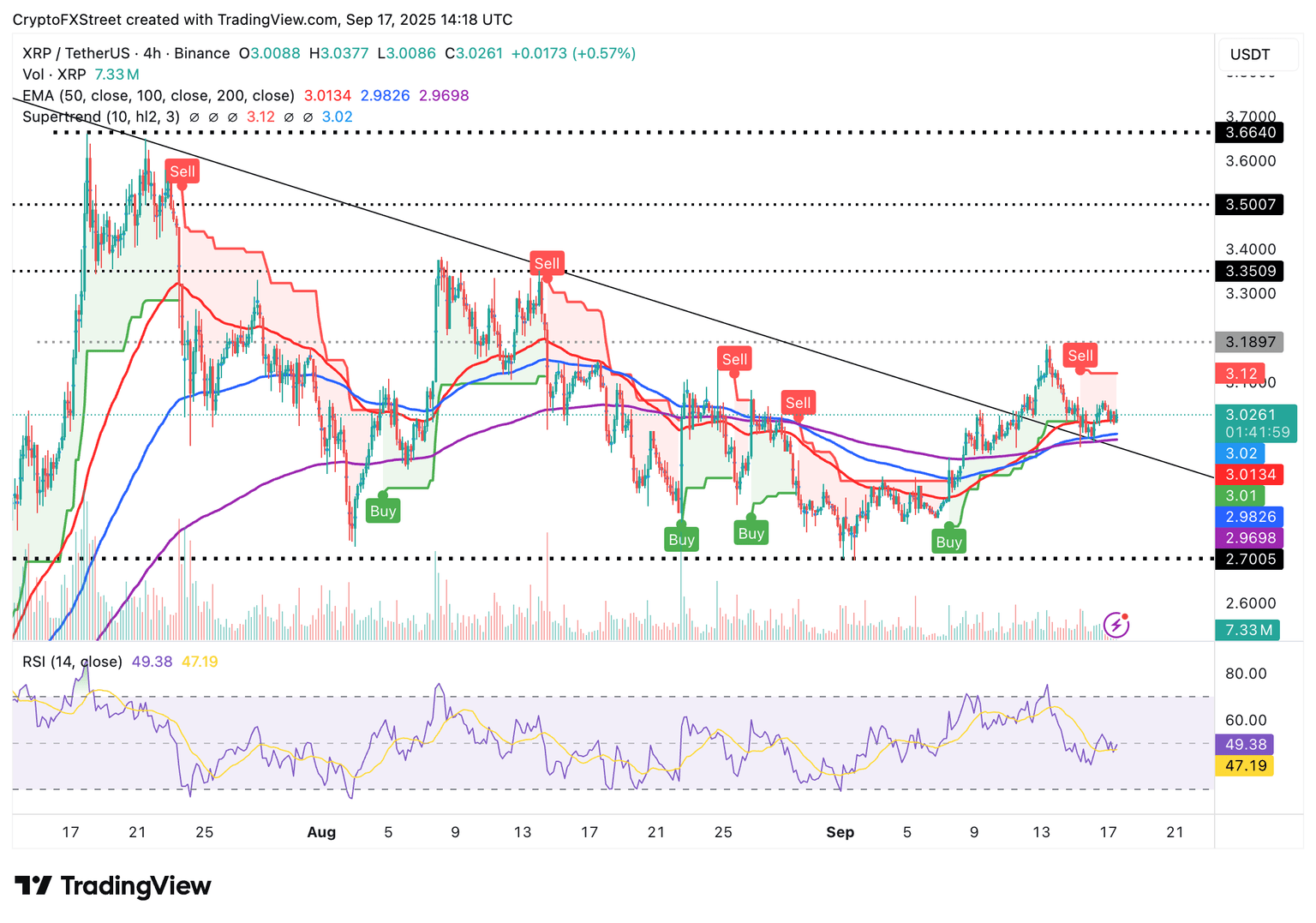 - XRP remains above $3.00, underpinned by growing optimism for a Federal Reserve interest rate cut.