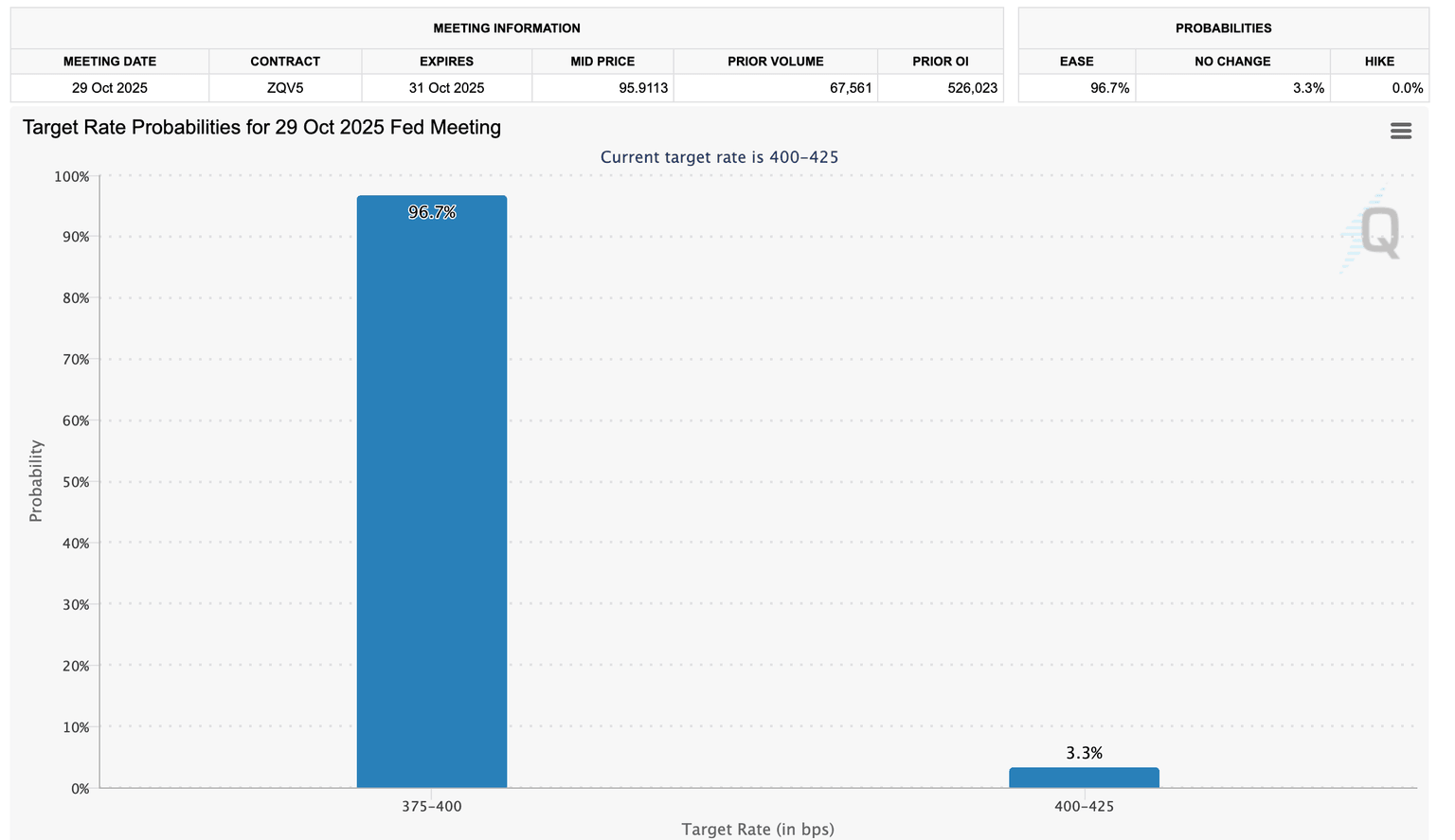 However, XRP could extend its recovery above the immediate $2.70 hurdle if sentiment continues to improve this week, underpinned by the US Federal Reserve (Fed) decision on interest rates. Experts surveyed by the CME Group believe there is a 96.7% chance the Fed will cut rates by 25 basis points, bringing the benchmark to a range of 3.75% to 4.00%.