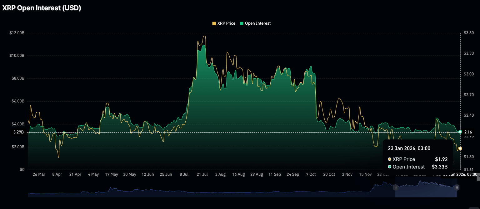 Retail interest weakened significantly since the October crash, which liquidated over $19 billion in crypto assets in a single day. The headwinds affected XRP derivatives, as future Open Interest (OI) tumbled from $8.36 billion on October 10 to $3.33 billion on Friday.