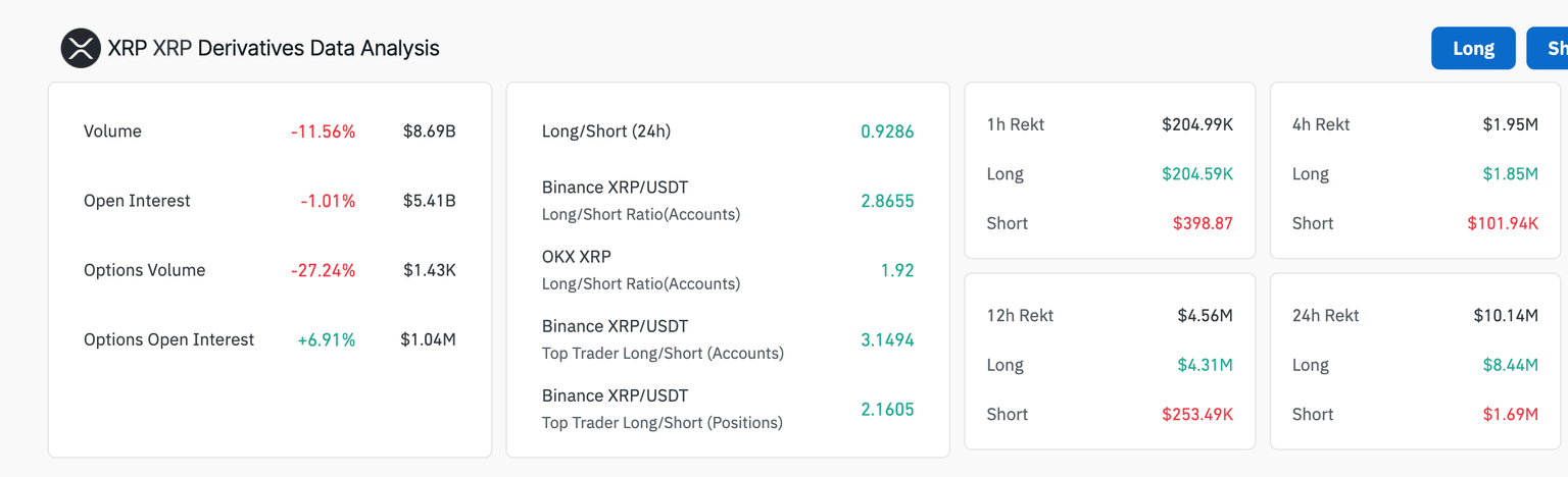 XRP derivatives market data | Source: CoinGlass