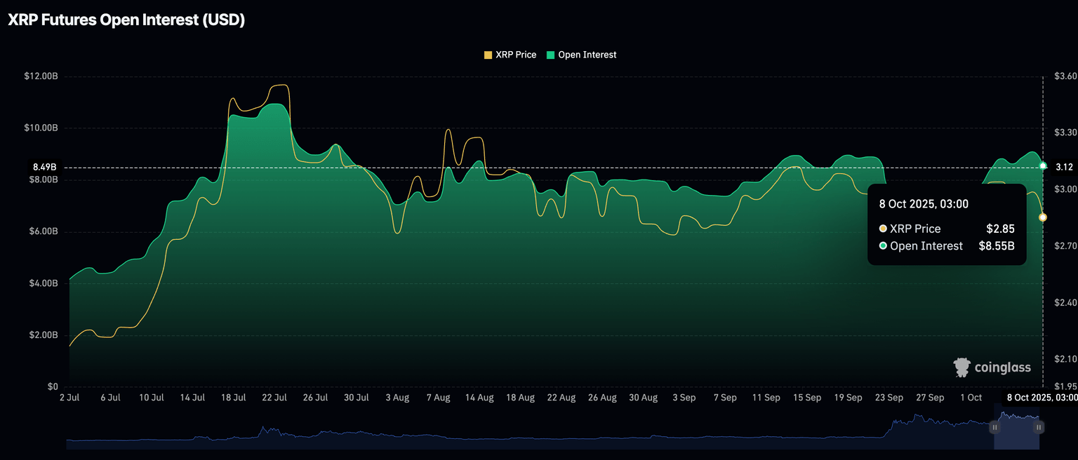 Ripple (XRP) is struggling to hold above a short-term support at $2.85 on Wednesday, reflecting a relatively calm cryptocurrency market after a sharp decline the previous day.