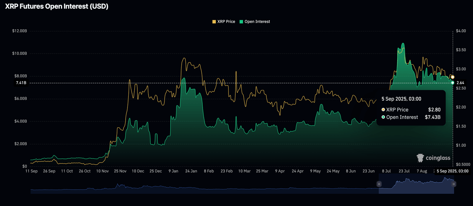 - XRP faces declining retail demand as Open Interest corrects to $7.4 billion.