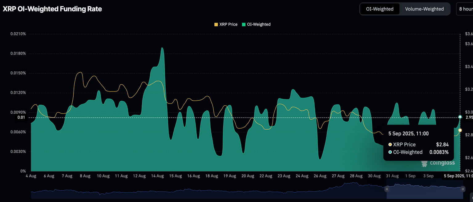 Still, a positive futures weighted funding rate of 0.0083% implies that more traders are increasingly leveraging long positions in XRP. If the funding rate rises in the upcoming days, risk-on sentiment could bolster XRP, allowing it to sustain the recovery above the $3.00 psychological level.