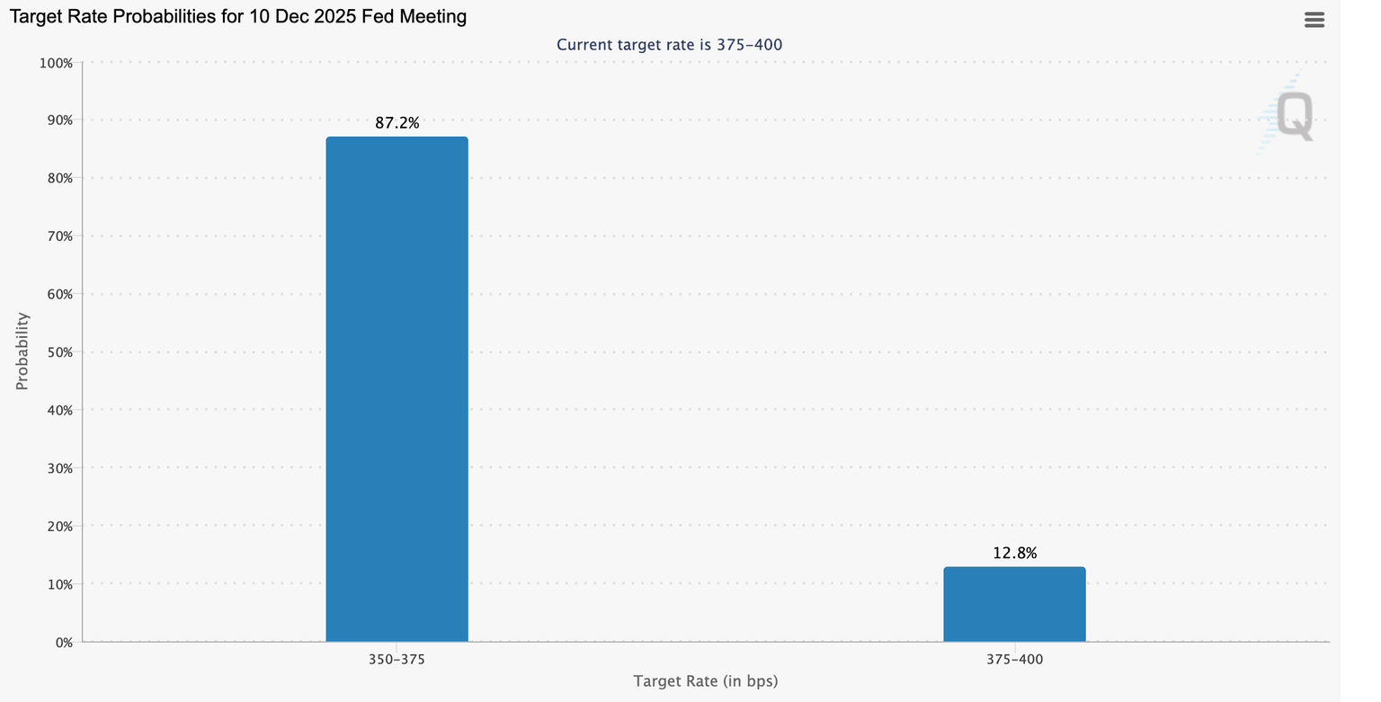The Federal Reserve (Fed) is expected to release its monetary policy decision on Wednesday. According to the CME FedWatch Tool, approximately 87% of interest rate traders are expecting a 25-basis-point cut. It would be positive for riskier assets like XRP, Bitcoin (BTC) and Ethereum (ETH) if the Fed lowers interest rates.