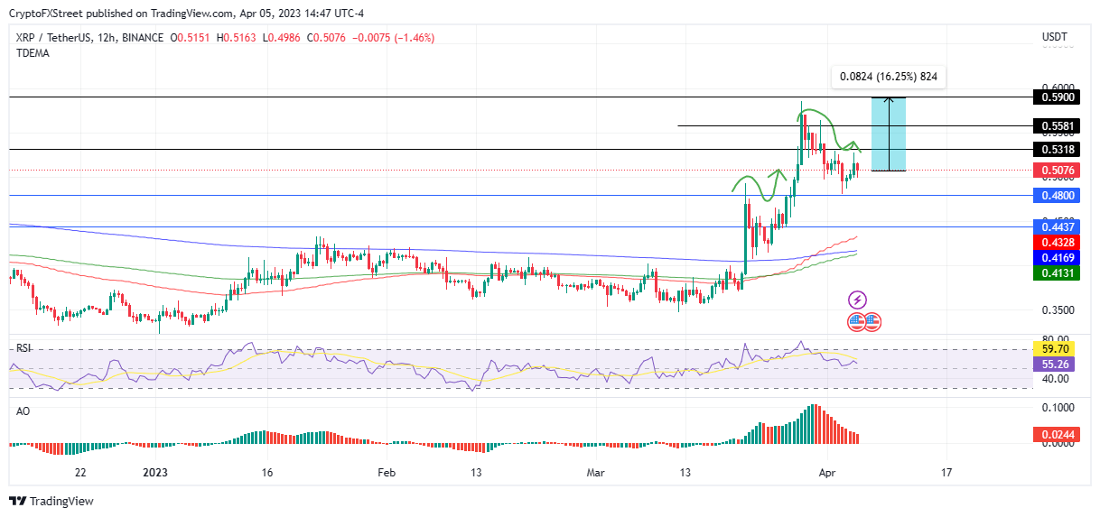 - XRP could soar 15% to retest the $0.590 resistance level after a March 29 rejection.